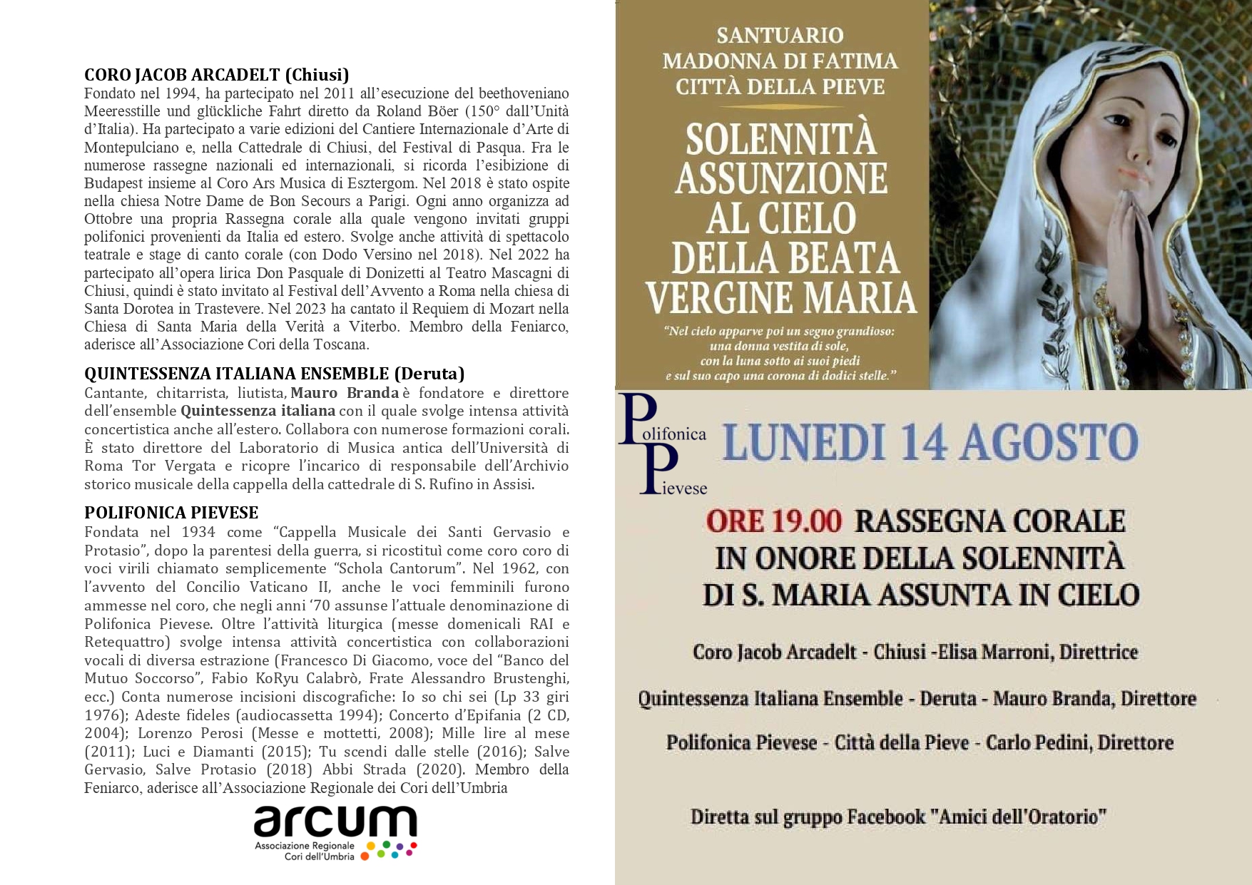 Il concerto delle corali al Santuario di Città della Pieve il 14 agosto 2023 ore 19.00. Clicca per vedere le specifiche. 12 agosto 202318 agosto 2023Aggiungi un commento Condividi: Fai clic per condividere su X (Si apre in una nuova finestra) X Fai clic per condividere su Facebook (Si apre in una nuova finestra) Facebook Mi piace Caricamento... Correlati