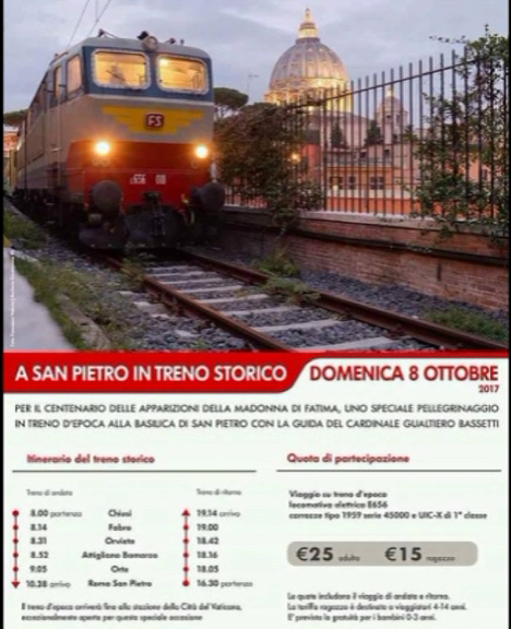 Sei anni fa, esattamente l’8 ottobre 2017, partiva un treno storico, destinazione Città del Vaticano, con la statua della Madonna di Fatima e tanti pellegrini al seguito.