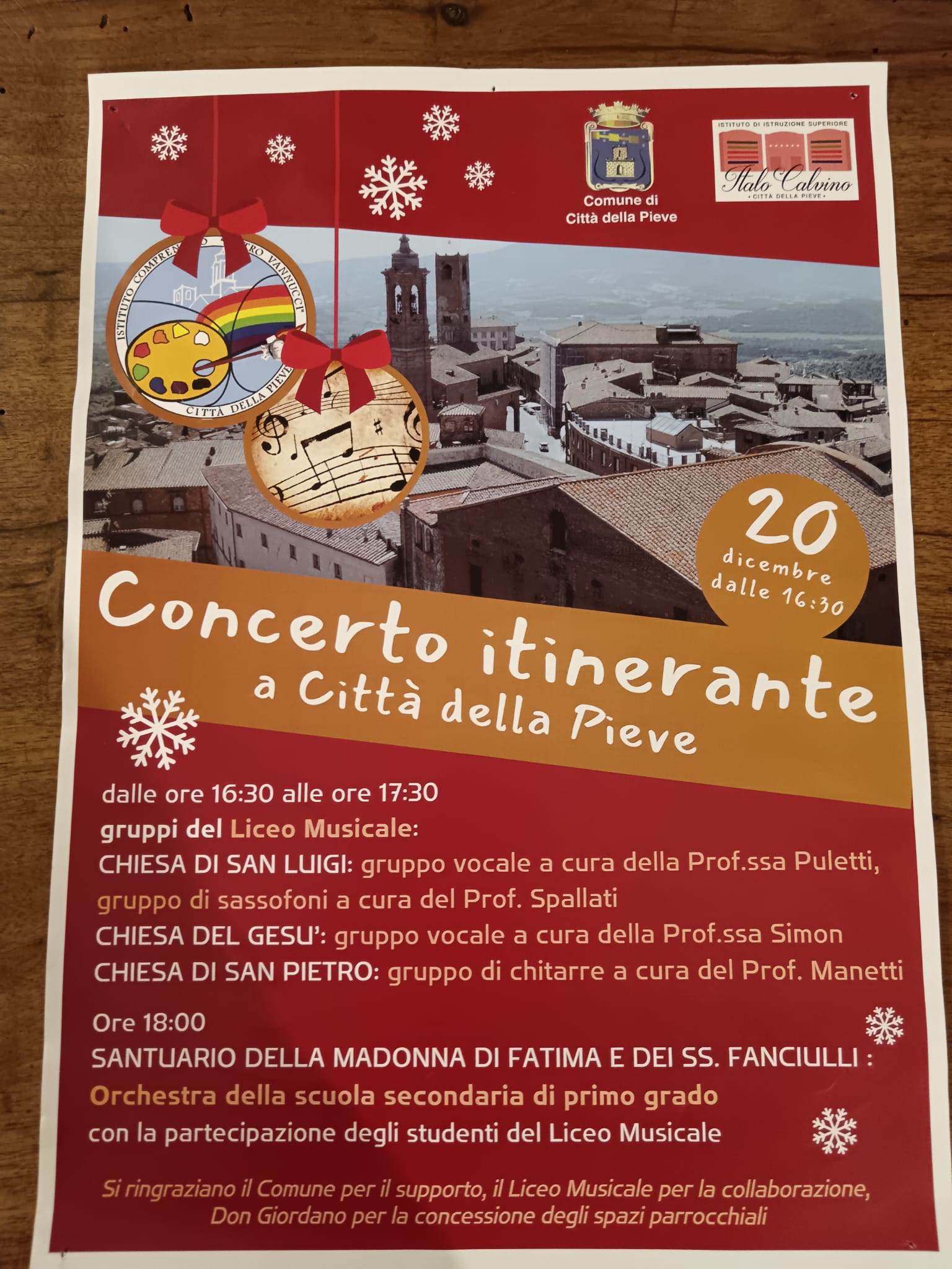 Oggi, 20 dicembre 2023 alle ore 18.00, l’orchestra e i ragazzi del liceo musicale di Città della Pieve si sono esibiti in concerto facendo tappa in Santuario. Una bellissima iniziativa che ha visto una grande partecipazione di pubblico.