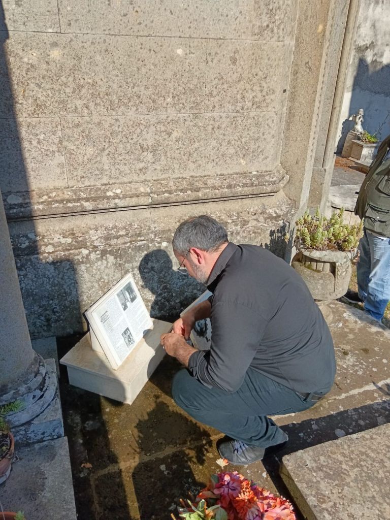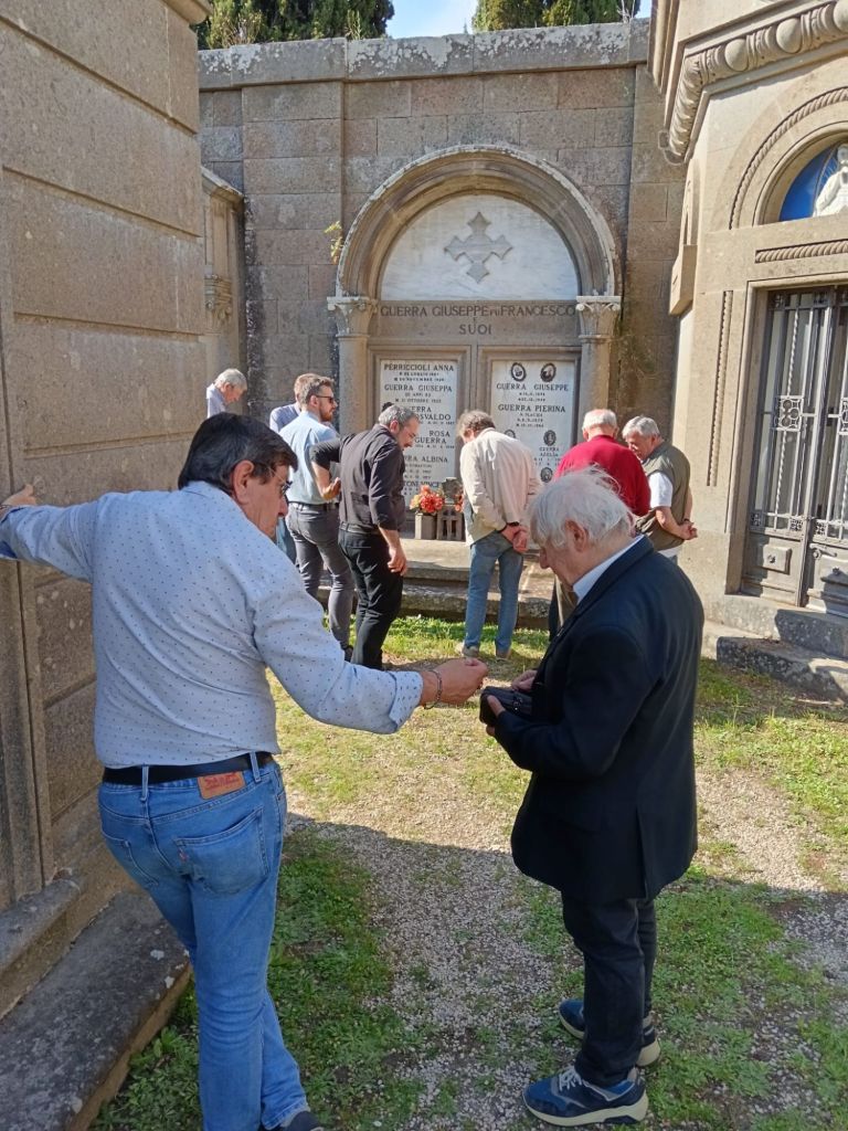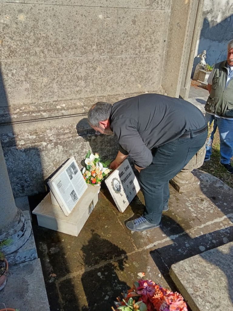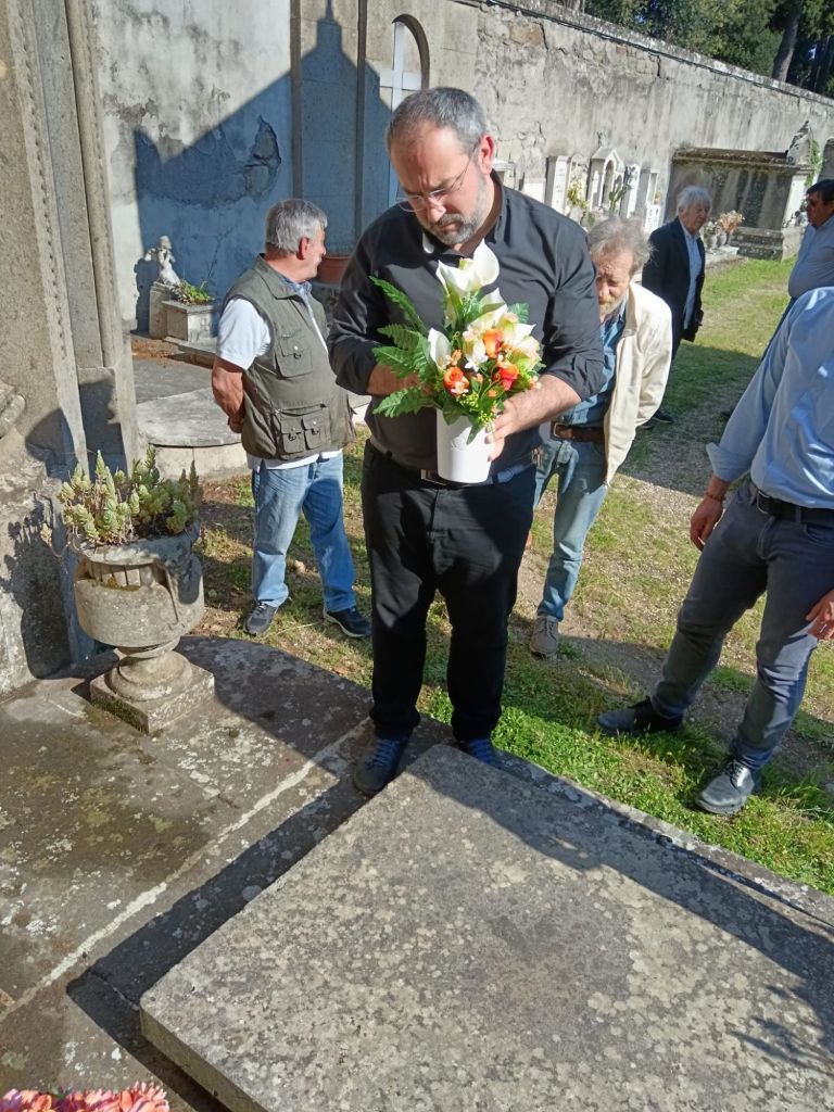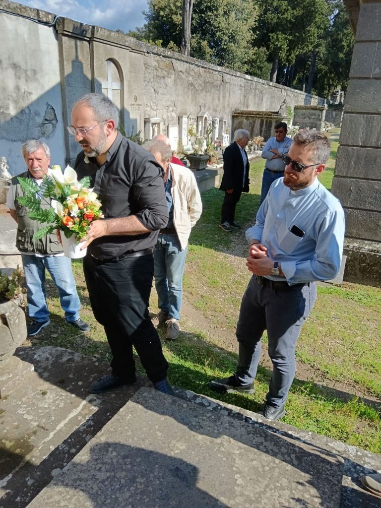All’arrivo è stata recitata la preghiera del Santo Rosario e successivamente deposta una composizione floreale sulla sua lapide.