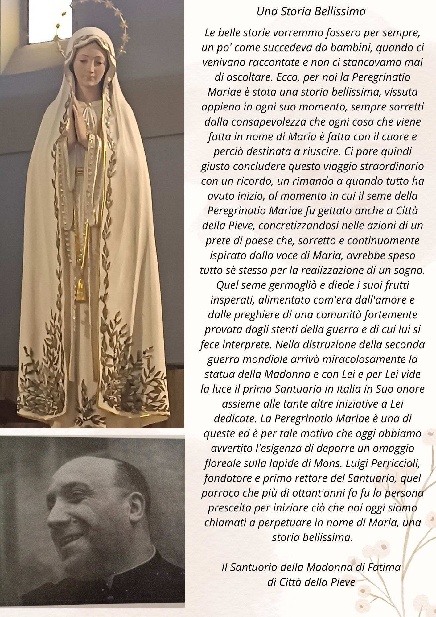 Oggi, 14 maggio 2024, a conclusione della Peregrinatio Mariae una rappresentanza del Santuario della Madonna di Fatima composta da alcuni volontari e guidata da Don Giordano Commodi, Don Samy Abu Eideh e Don Aldo Gattobigio si è recata a Viterbo presso il cimitero comunale dove è sepolto Mons. Luigi Perriccioli, primo rettore e fondatore del nostro Santuario.