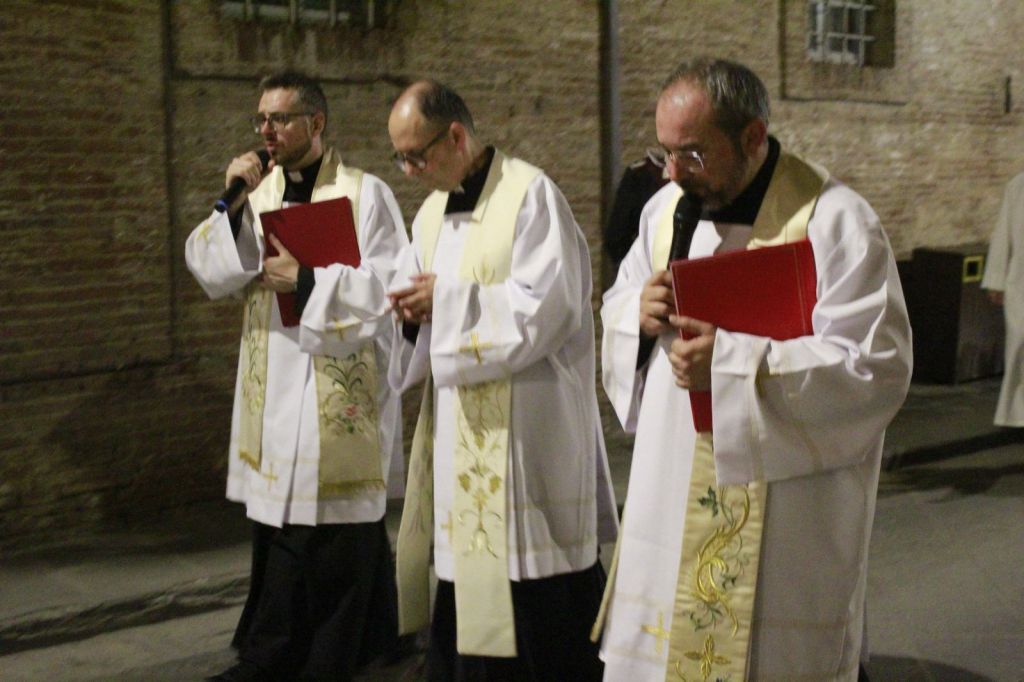 Il corteo dapprima ha fatto una breve sosta all’ esterno del Monastero delle Clarisse, chiuso al pubblico per lavori di ristrutturazione, ma che non ha comunque impedito di poter far salutare alle suore il passaggio della statua.