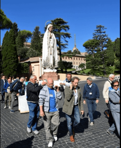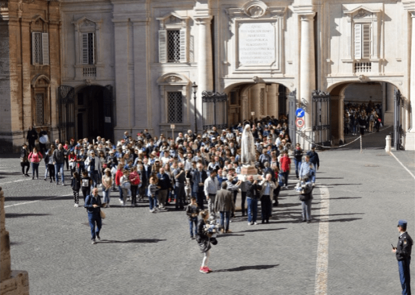 I pellegrini, giunti in Vaticano, si sono poi recati in processione con la statua della Madonna di Fatima in Piazza San Pietro per partecipare alla recita dell’Angelus di papa Francesco. Il Santo Padre, nel rivolgere il suo saluto domenicale ai vari gruppi di fedeli presenti, si è rivolto ai perugino-pievesi con queste parole: “Saluto con affetto il gruppo del Santuario della Madonna di Fatima in Città della Pieve accompagnato dal Cardinale Gualtiero Bassetti. Cari fratelli e sorelle vi incoraggio a proseguire con gioia il vostro cammino di fede sotto lo sguardo premuroso e tenero della nostra Mamma Celeste. Lei è il nostro rifugio e la nostra speranza. Andate avanti!“.