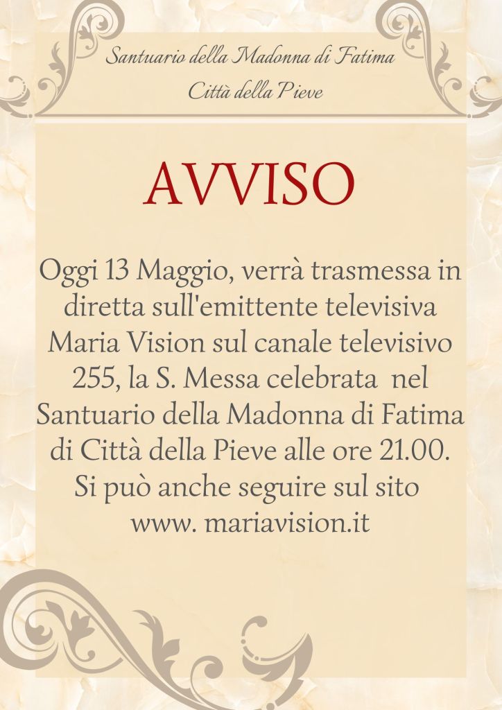 DI SEGUITO I LINK ALLA PAGINA FACEBOOK DI MARIAVISION DOVE E’ POSSIBILE RIVEDERE INTEGRALMENTE LE CERIMONIE DEL 13 MAGGIO 2025 CELEBRATE IN SANTUARIO