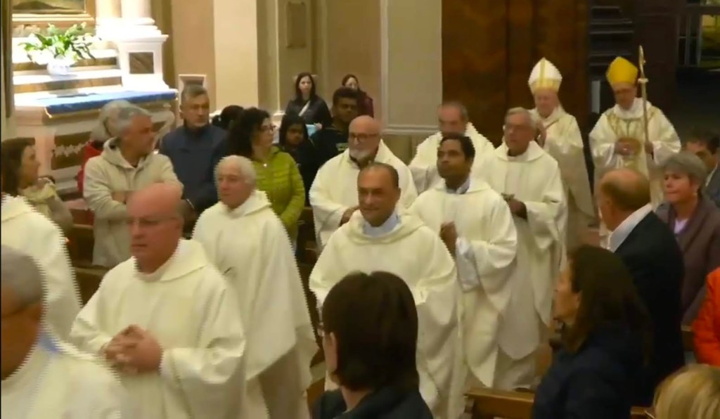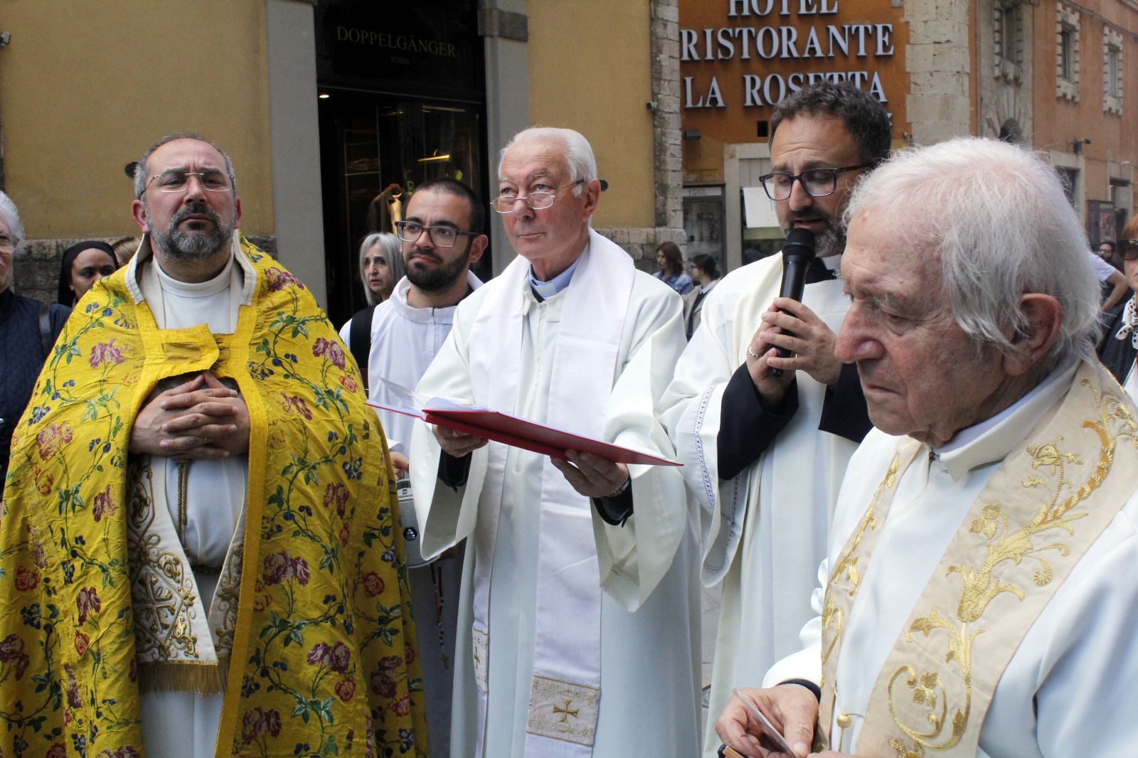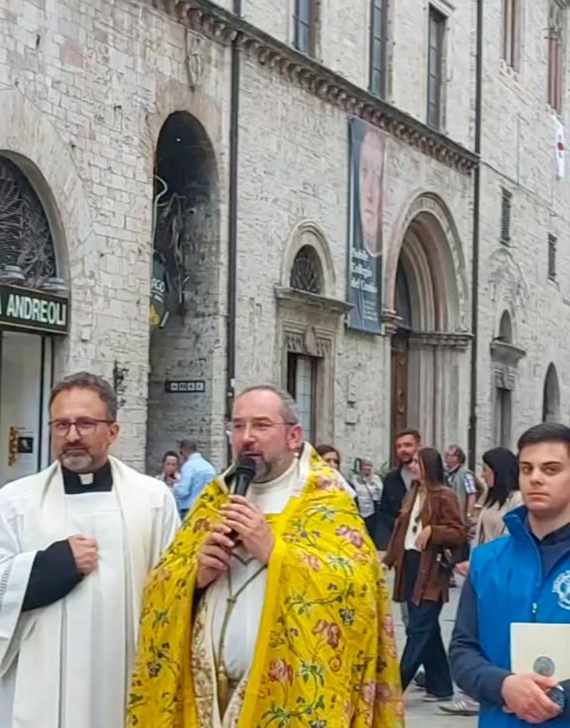 In testa alla processione, Don Giordano , Don Aldo e Don Marco ed altri officianti della Diocesi di Perugia.