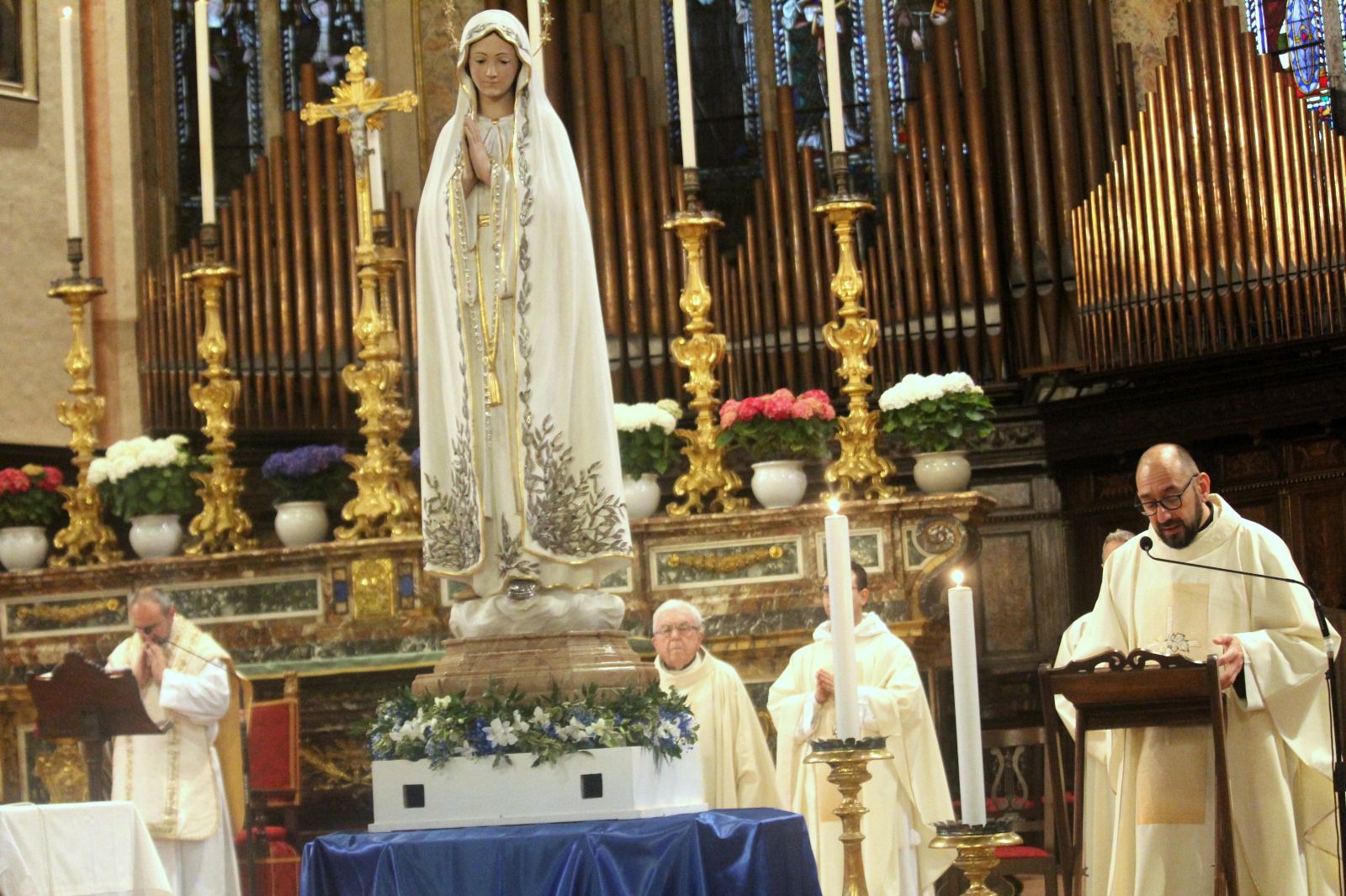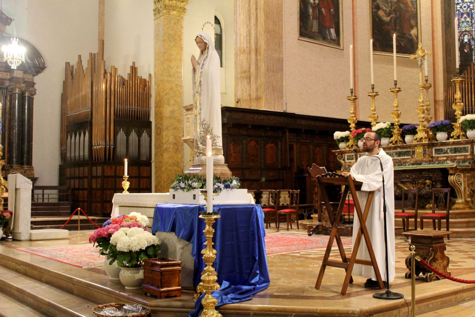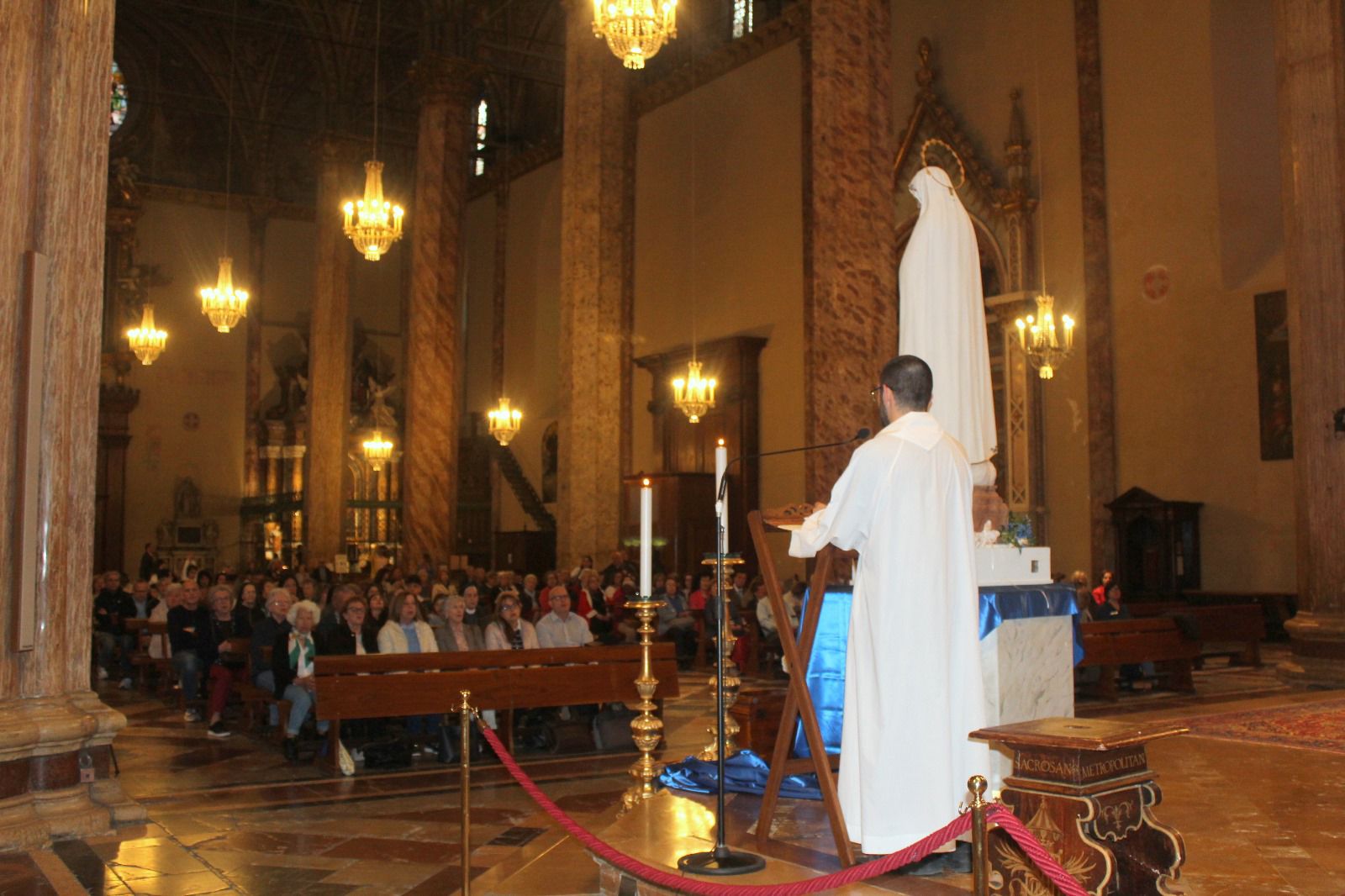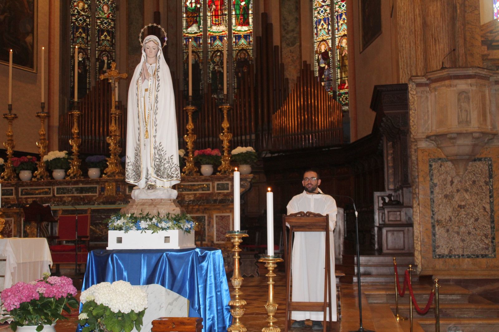 All'entrata in Cattedrale la statua è stata posta a sinistra dell'altare maggiore dopodiché si è recitato il Santo Rosario e a seguire la S. Messa con anche la presenza di Don Simone.