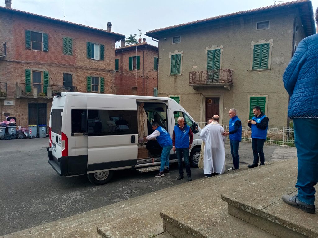 La statua è stata accompagnata durante il tragitto dai volontari e trasportata a spalla dai confratelli della Confraternita del Sant'Anello di Perugia, che ringraziamo sentitamente per la preziosa collaborazione.