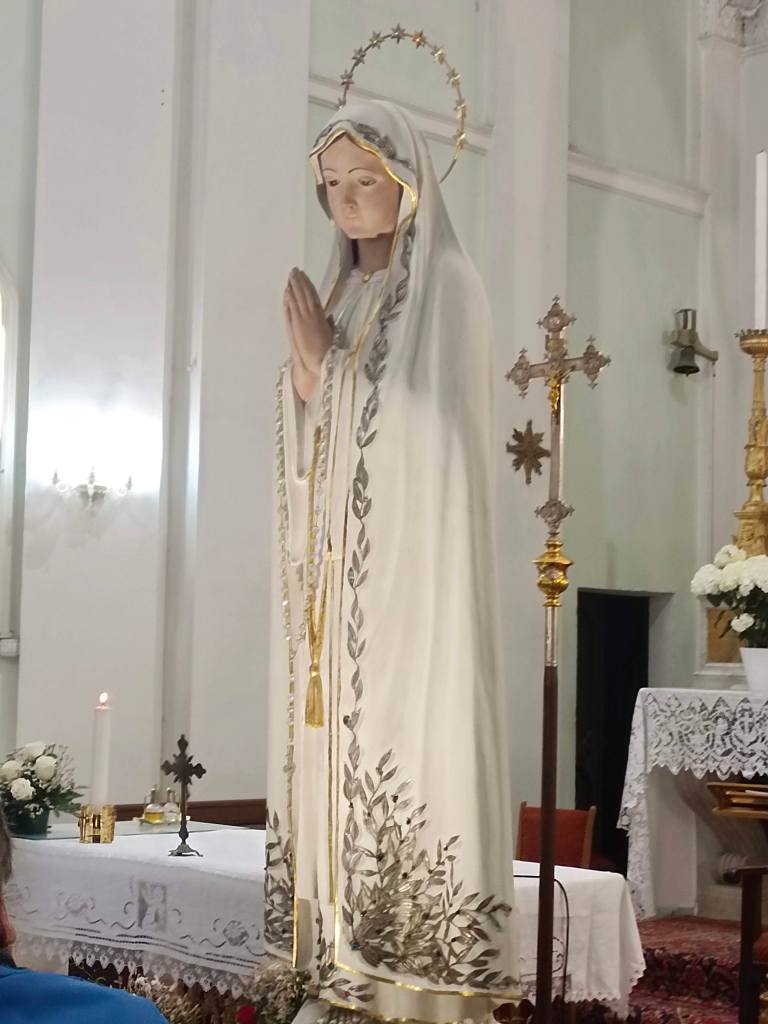 La statua della Madonna di Fatima ripartirà domani per proseguire il suo pellegrinaggio verso Pozzuolo, dove è attesa alle ore 16.00 presso la chiesa dei Santi Pietro e Paolo e Maria delle Grazie, per continuare il suo messaggio di fede e speranza.