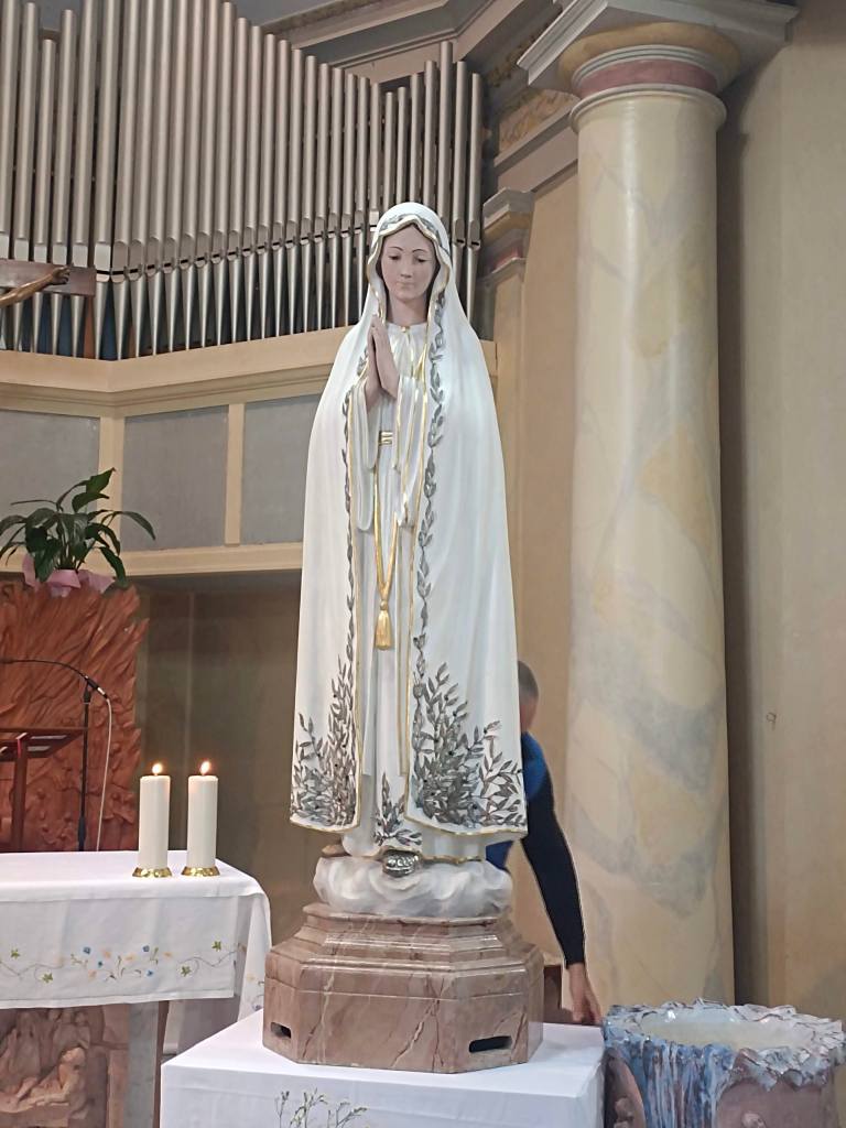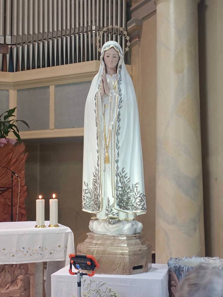 La statua della Madonna di Fatima è arrivata oggi alla chiesa dei Santi Pietro e Paolo e Maria delle Grazie poco dopo le ore 16.00 accompagnata da Don Giordano e dai volontari.
