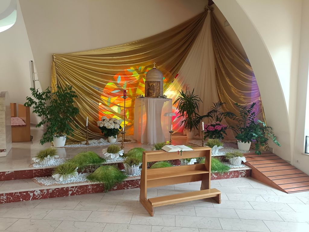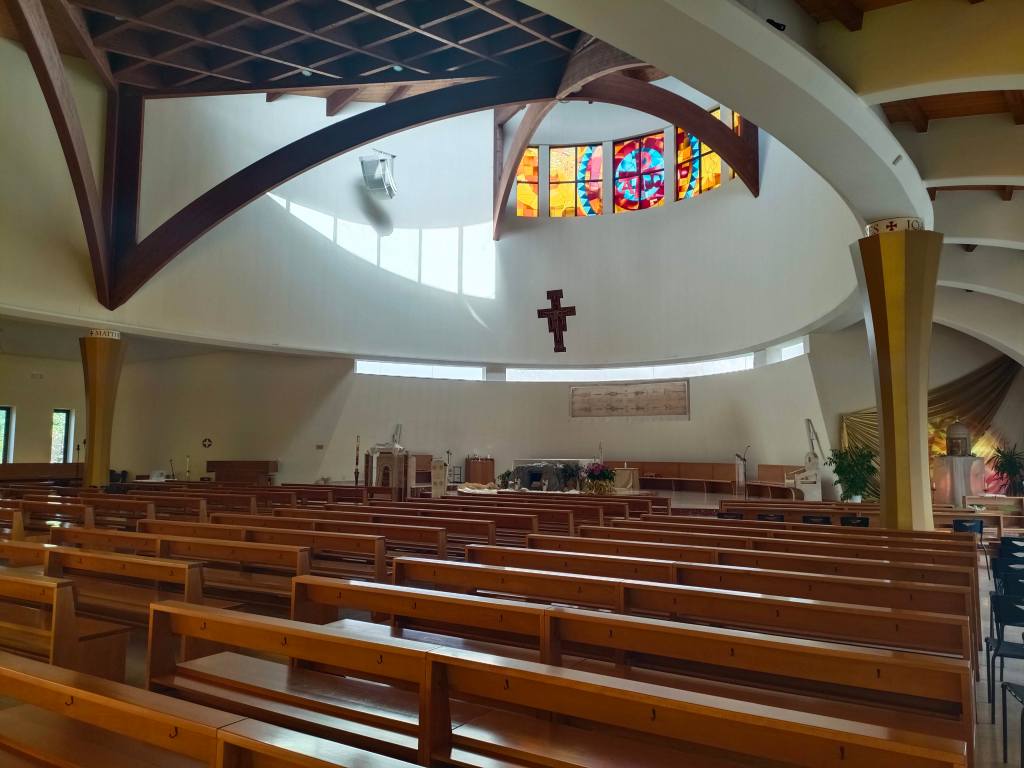 Chiesa di nuovissima concezione inaugurata nel 2013 comprende la chiesa stessa e l’edificio pastorale. Di forma semicircolare è stata realizzata dall’Arch. Eugenio Abruzzini. La struttura della chiesa è costituita da una cupola ovale sostenuta da quattro colonne in acciaio di forma dodecagonale in memoria dei dodici apostoli e segnate con il nome dei quattro evangelisti. Il fonte battesimale, in marmo bianco di Carrara, poggia su una tarsia in marmo azzurro e bianco. L’altare è in travertino romano classico. In alto vi è una croce, che è una riproduzione foto-artistica reale della famosa croce di San Damiano di San Francesco.