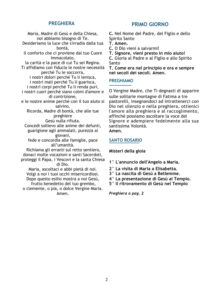 Da oggi e sino al 12 maggio, tutte le sere in Santuario, verrà celebrata alle ore 17.30 la Novena e alle ore 18.00 la S.Messa.