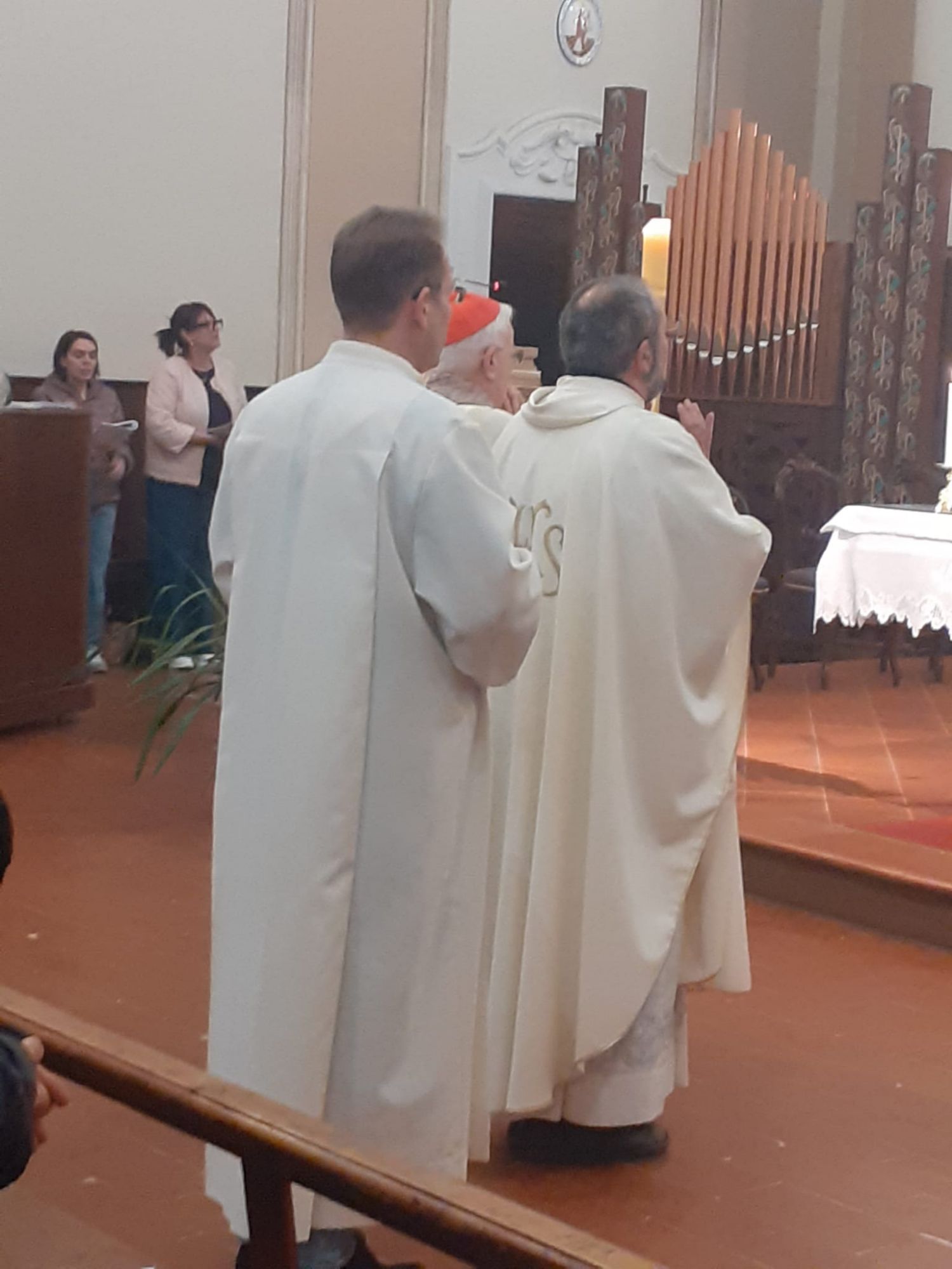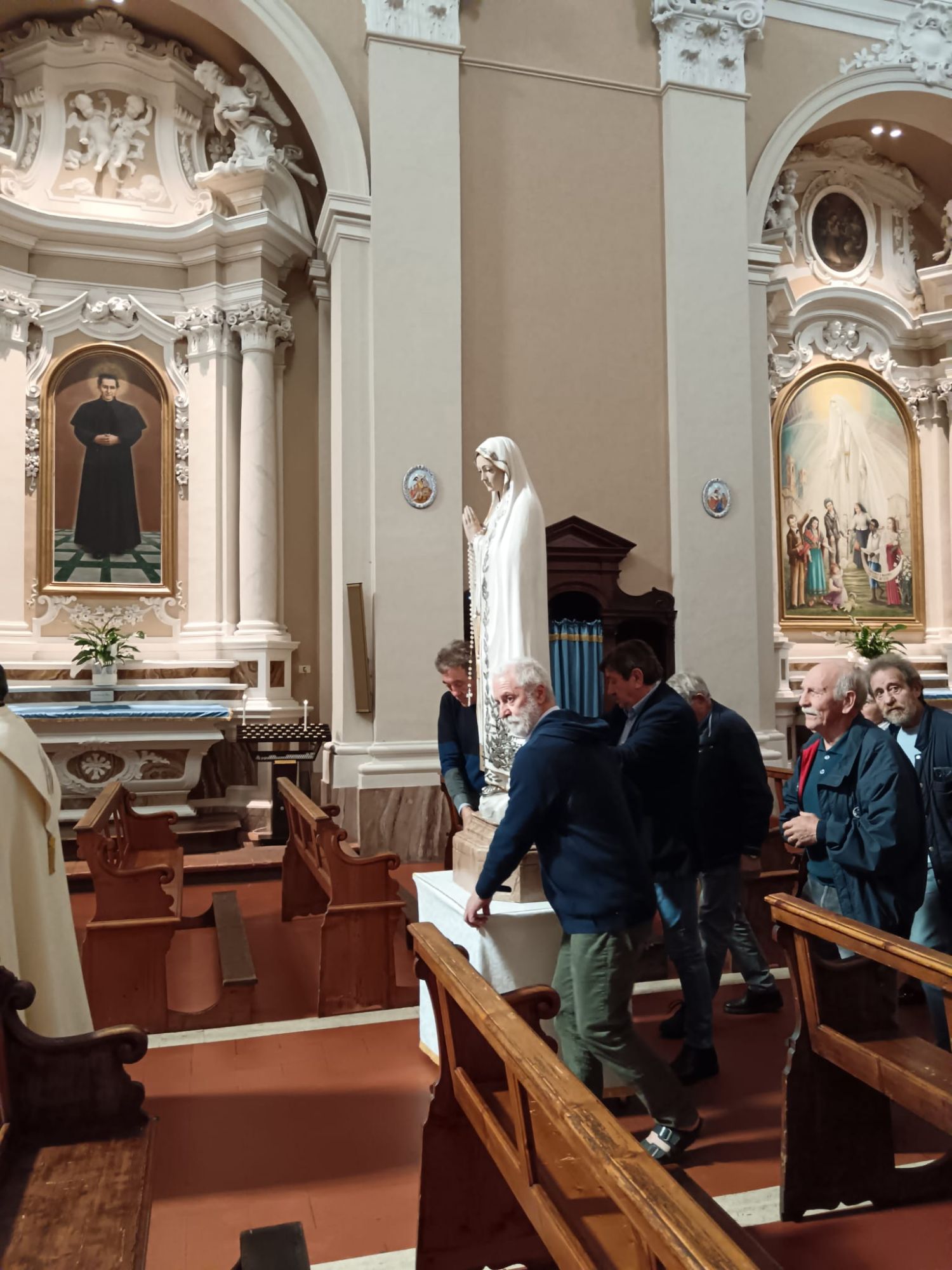 A ricevere la statua della Madonna Don Samy Abu Eideh parroco di Ponticelli e Don Samson Pjetraj parroco di Moiano ed i fedeli che hanno seguito l'ingresso della statua in chiesa ove è stata posizionata a fianco dell'altare maggiore.