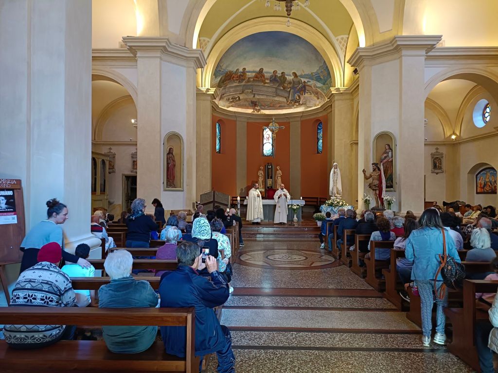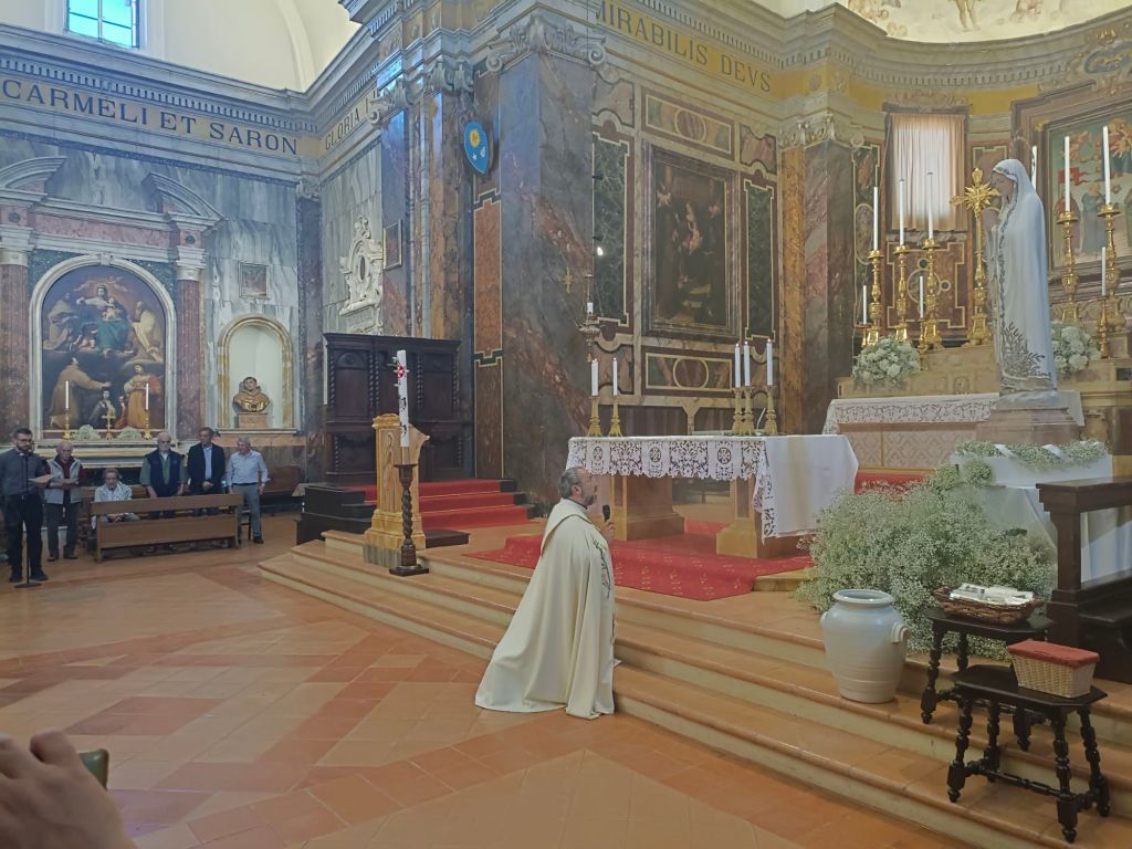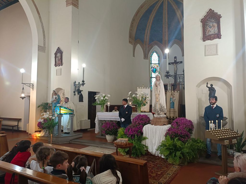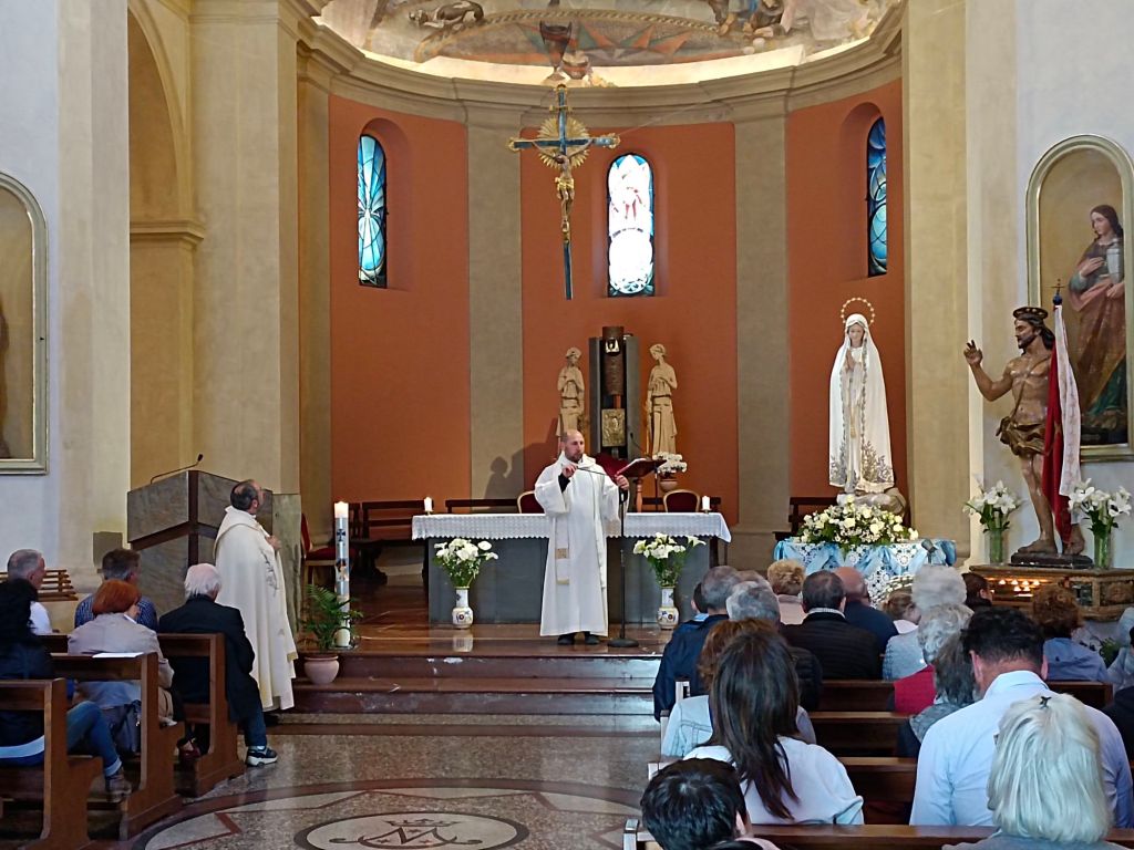 In una chiesa così gremita di fedeli Don Giordano ha preso la parola raccontando brevemente la miracolosa storia della Madonna di Fatima e dell'arrivo della statua a Città della Pieve, interloquendo scherzosamente con i bambini del catechismo. Don Giordano si è poi congedato dai presenti lasciando le funzioni a Don Antonio Canestri.