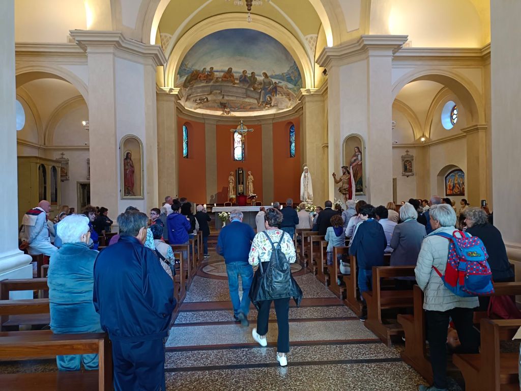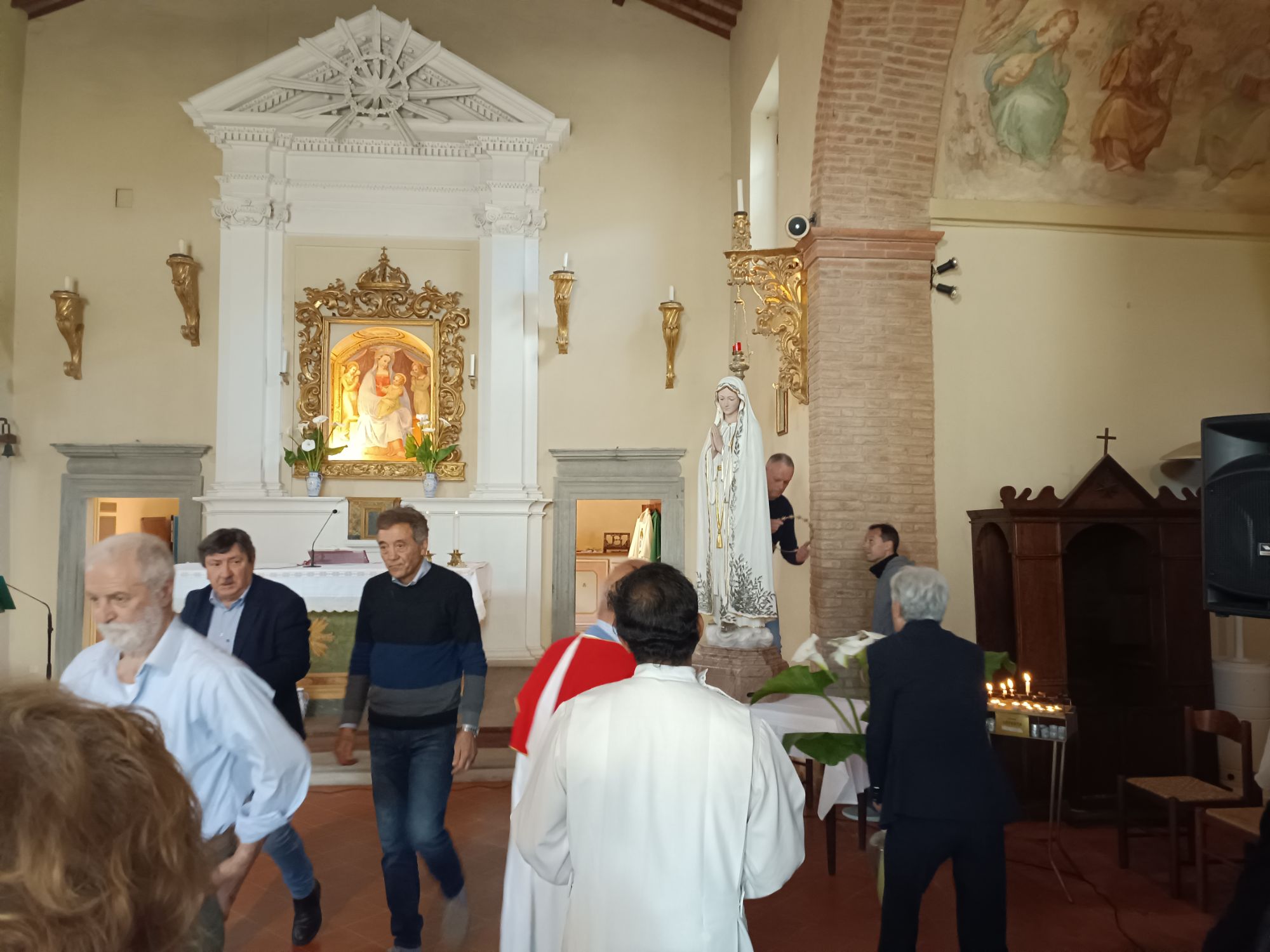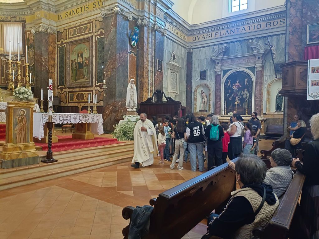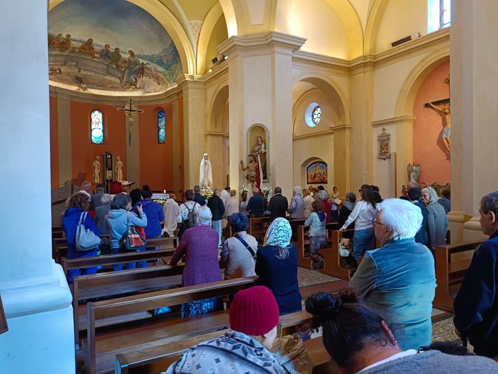In una chiesa così gremita di fedeli Don Giordano ha preso la parola raccontando brevemente la miracolosa storia della Madonna di Fatima e dell'arrivo della statua a Città della Pieve, interloquendo scherzosamente con i bambini del catechismo. Don Giordano si è poi congedato dai presenti lasciando le funzioni a Don Antonio Canestri.