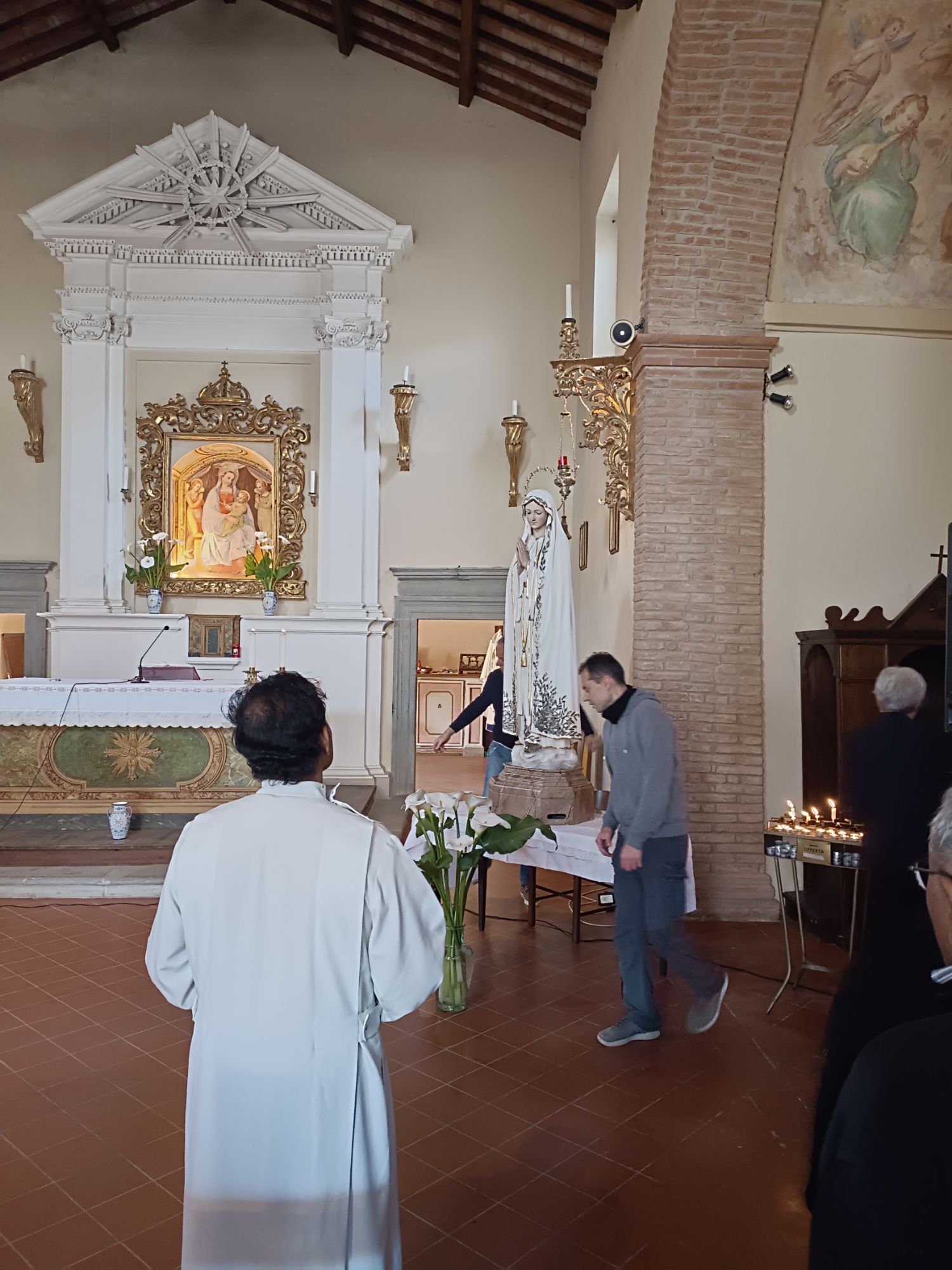 Oggi, ad attendere la statua della Madonna una moltitudine di fedeli del luogo. La statua é stata quindi collocata a fianco dell'altare e a seguire si è svolta una funzione in Suo onore.