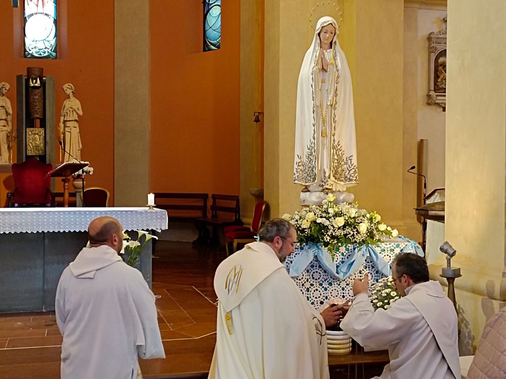 Dopo l'Atto di Consacrazione al Cuore Immacolato di Maria Don Marco Cappellato ha ricordato la storia dei fanciulli di Fatima. Infine Don Giordano ha benedetto tutti i presenti in chiesa e lasciato le funzioni a Don Marco per le altre celebrazioni che continueranno tutto oggi e domani secondo il programma indicato nella locandina a fondo pagina.