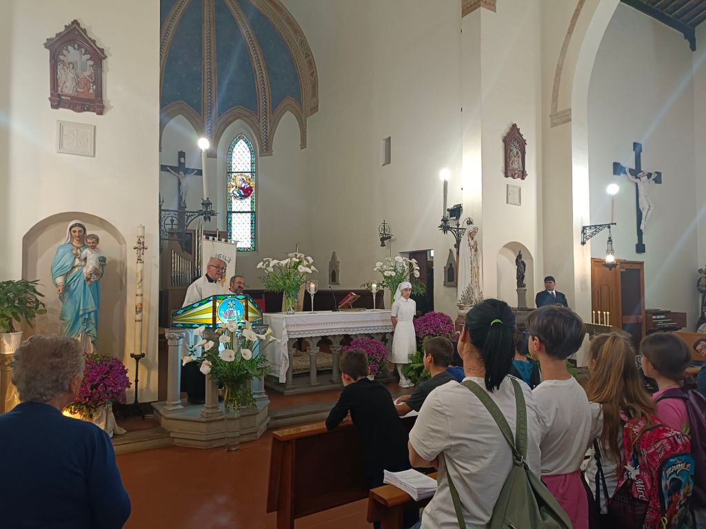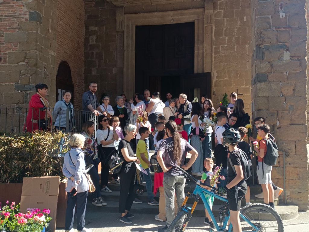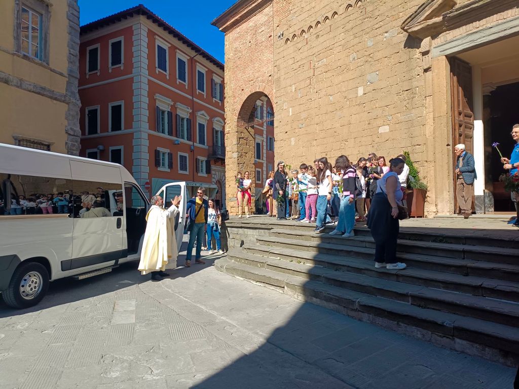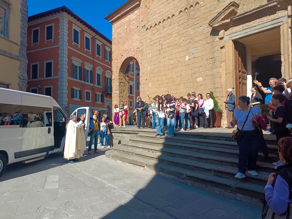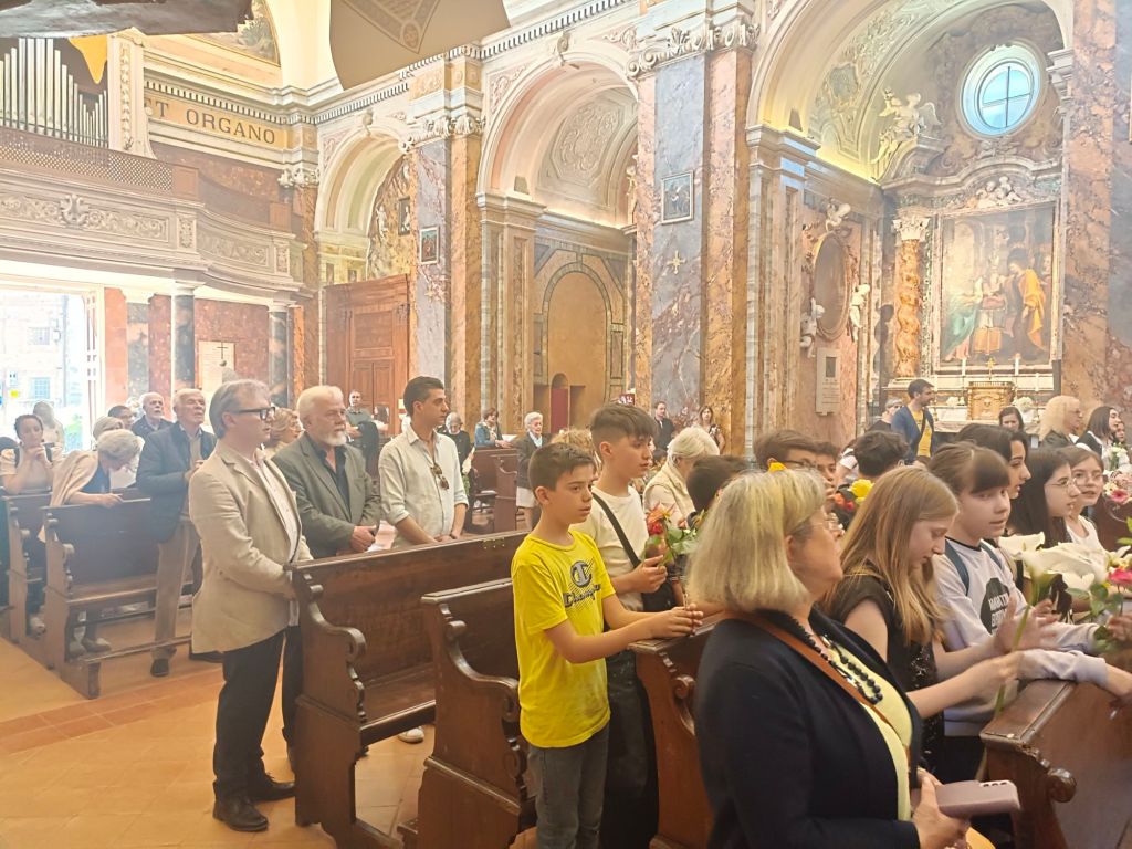 Di fronte alla chiesa gremita Don Giordano ha preso la parola ricordando il miracoloso arrivo della statua della Madonna a Città della Pieve nel 1943. Subito dopo i bambini dell'unità pastorale hanno intonato il canto "preferisco il paradiso", un momento estremamente toccante.