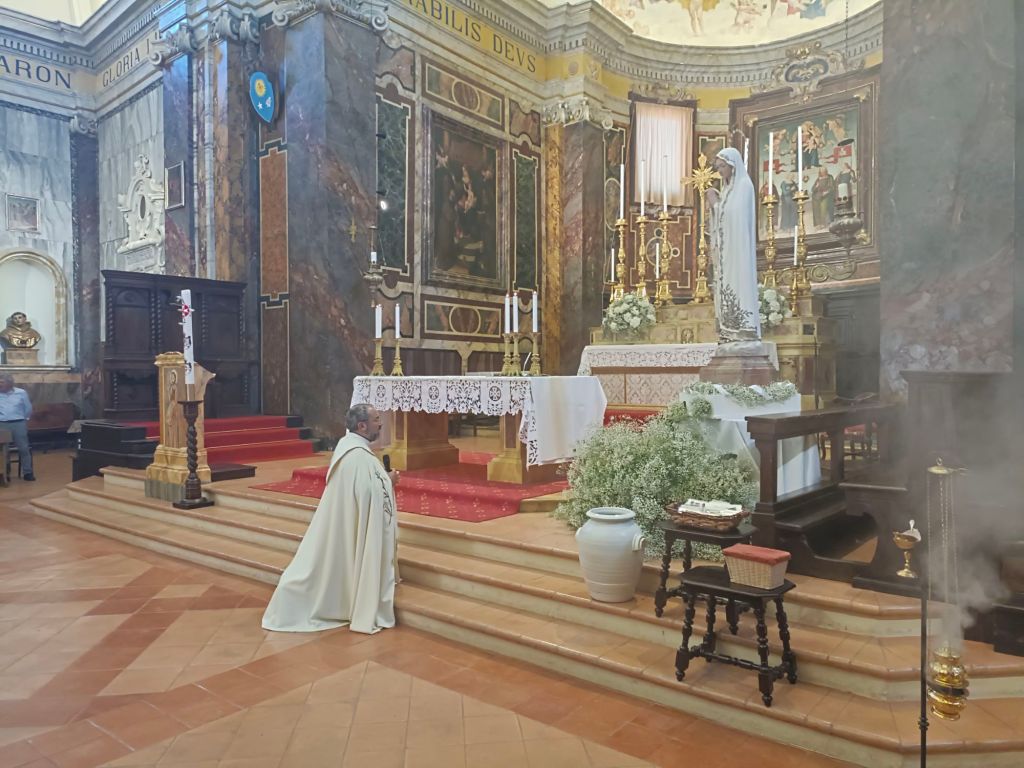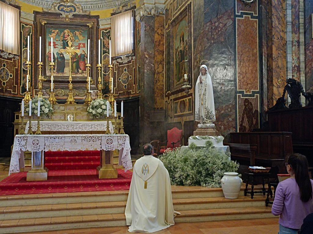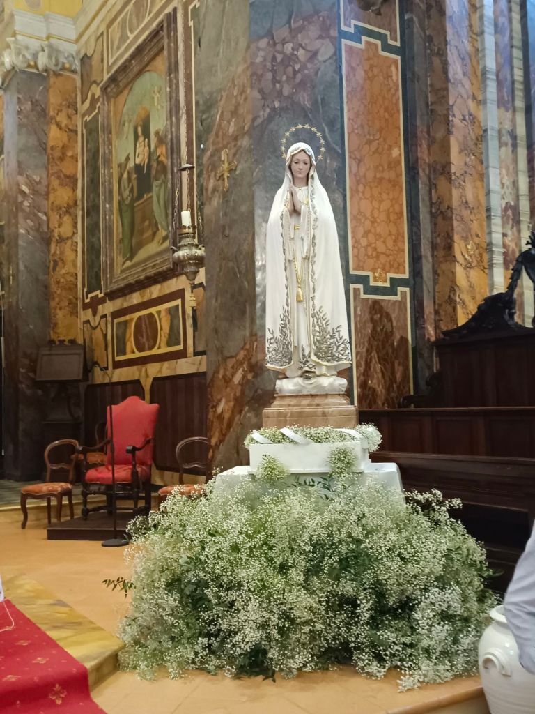 Alle ore 17.00 si è svolta la Novena alla Madonna di Fatima, alle ore 17.30 l’Adorazione Eucaristica e alle ore 18.00 la S. Messa, presieduta dal Cardinale Gualtiero Bassetti e da Don Giordano Commodi, parroco della Concattedrale dei Santi Gervasio e Protasio e rettore del Santuario della Madonna di Fatima di Città della Pieve.