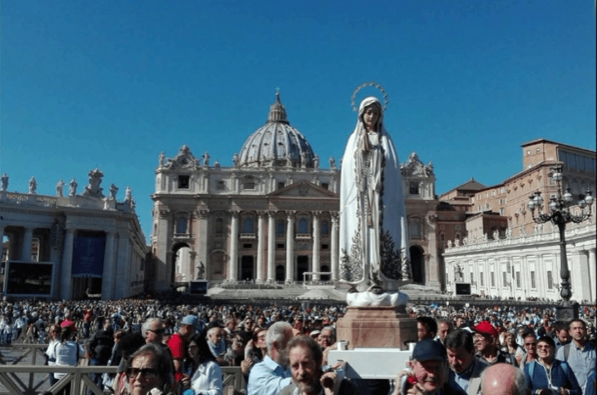 Nel corso dell’anno 2017, in occasione del centenario dell’apparizione, è stato organizzato un pellegrinaggio a Roma in treno storico, con la partecipazione del Cardinale Gualtiero Bassetti, durante il quale la statua ha ricevuto la benedizione di Papa Francesco.