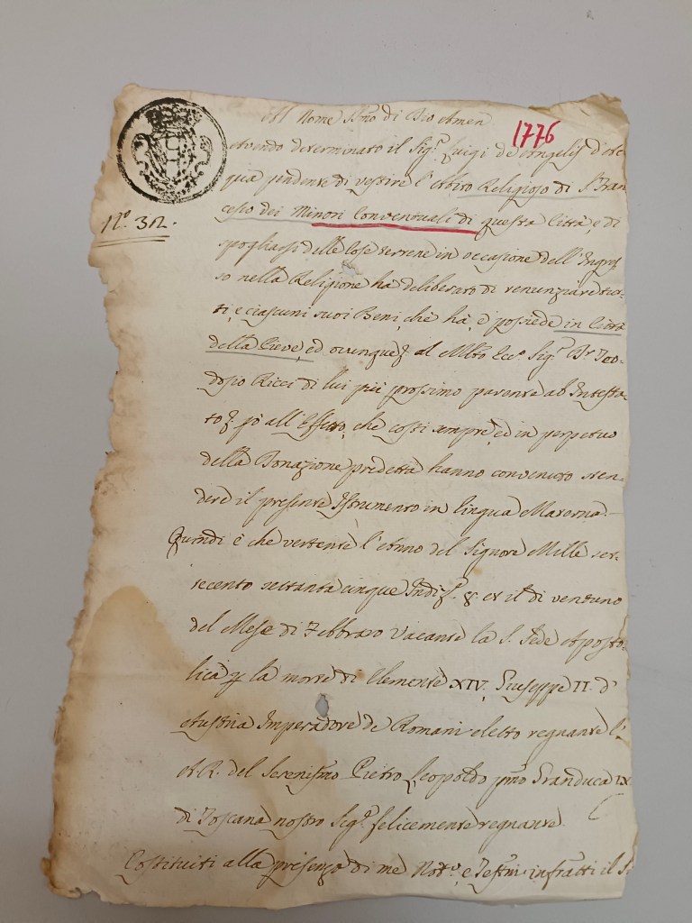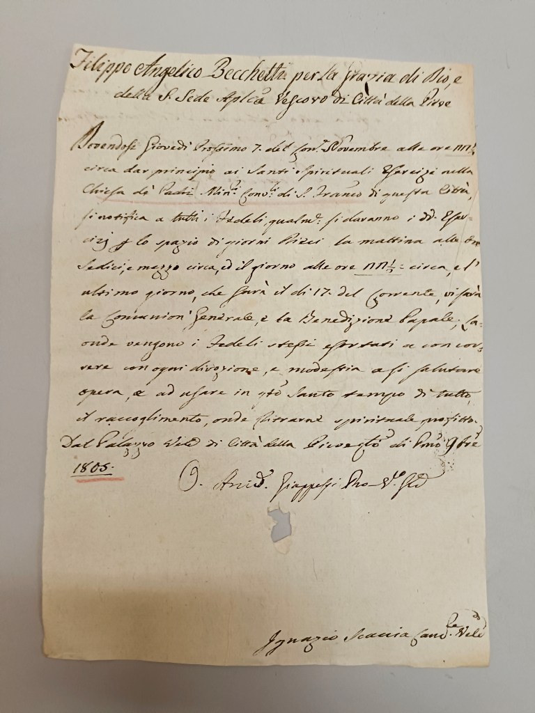 Il 22 luglio 1861, il Consiglio Comunale di Città della Pieve votò per l’esclusione delle famiglie religiose dei Padri Conventuali, i Servi di Maria e gli Agostiniani.