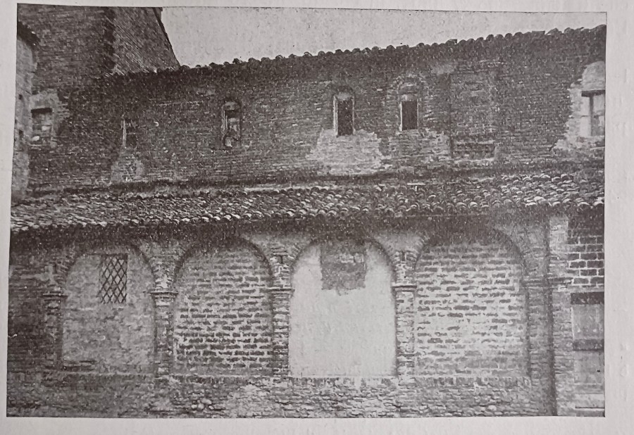 per l’abitazione dei Frati. Gli archi sottostanti, che ora si presentano chiusi, costituivano un portico che girava anche nelle altre tre parti del fabbricato, ora scomparse, formando il quadrato del primo chiostro francescano.